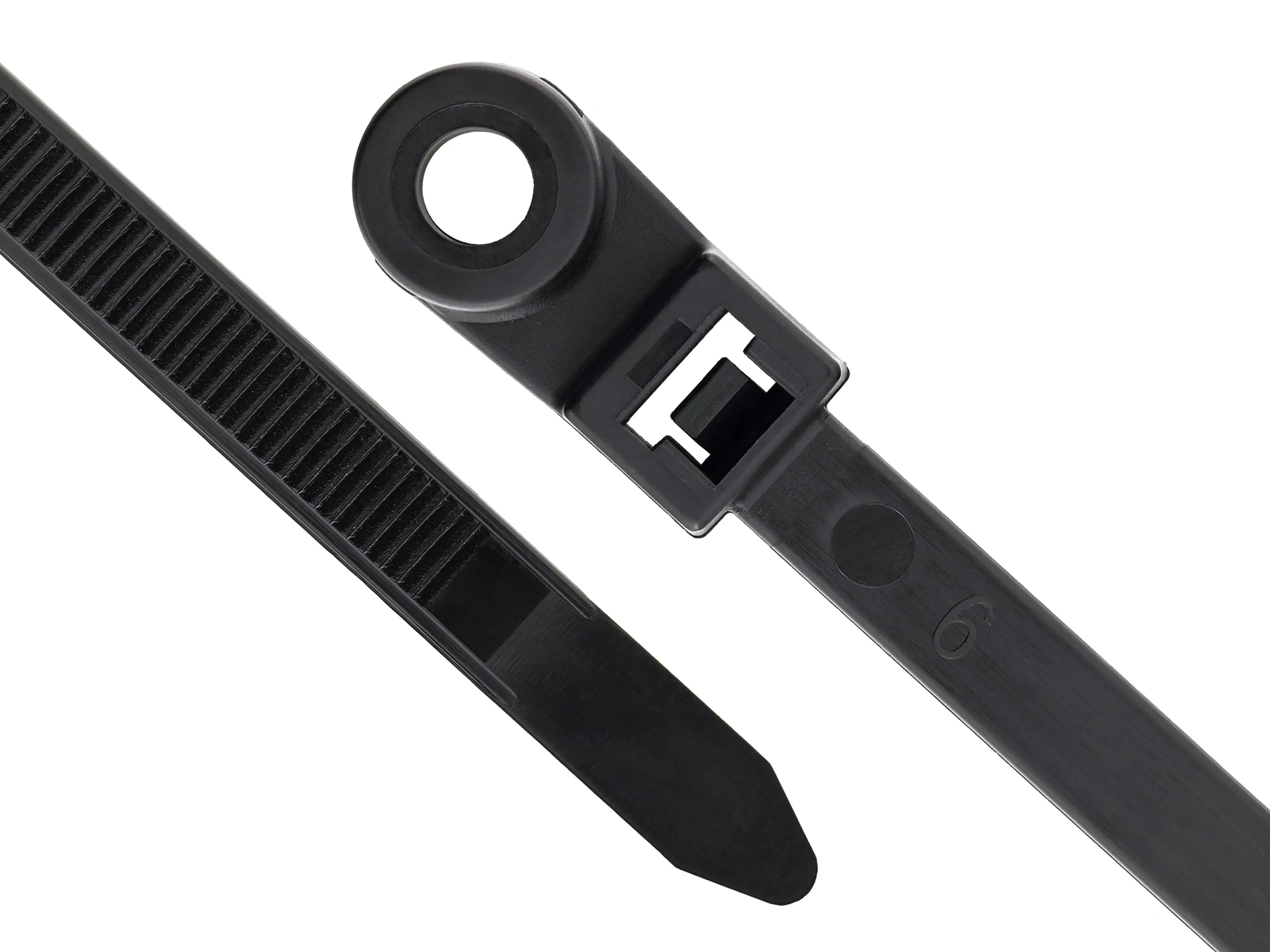 SCT mount head nylon cable ties are a natural choice for many applications due to their versatility and ease of installation in addition to their low price point. Nylon Cable Ties have virtually limitless applications for just about every industry. Suitable for most applications, our mount head cable ties have a continuous working temperature of -40°F to 185°F and can support a maximum weight of 120lbs. Ideal for use in situations where mounting and bundling is required. All SCT feature smooth rounded edges making these cable ties easy on the hands, in addition to a finely spaced gear rack allowing for exact adjustment ensuring a snug fit. Comprised of 6/6 Nylon with a compact molecular structure provides better weathering and sunlight resistance, higher melting point, superior colorfastness and excellent abrasion resistance creating a high quality, dependable cable tie with natural high resistance to insects, fungi, animals, molds, mildew, rot and many chemicals.