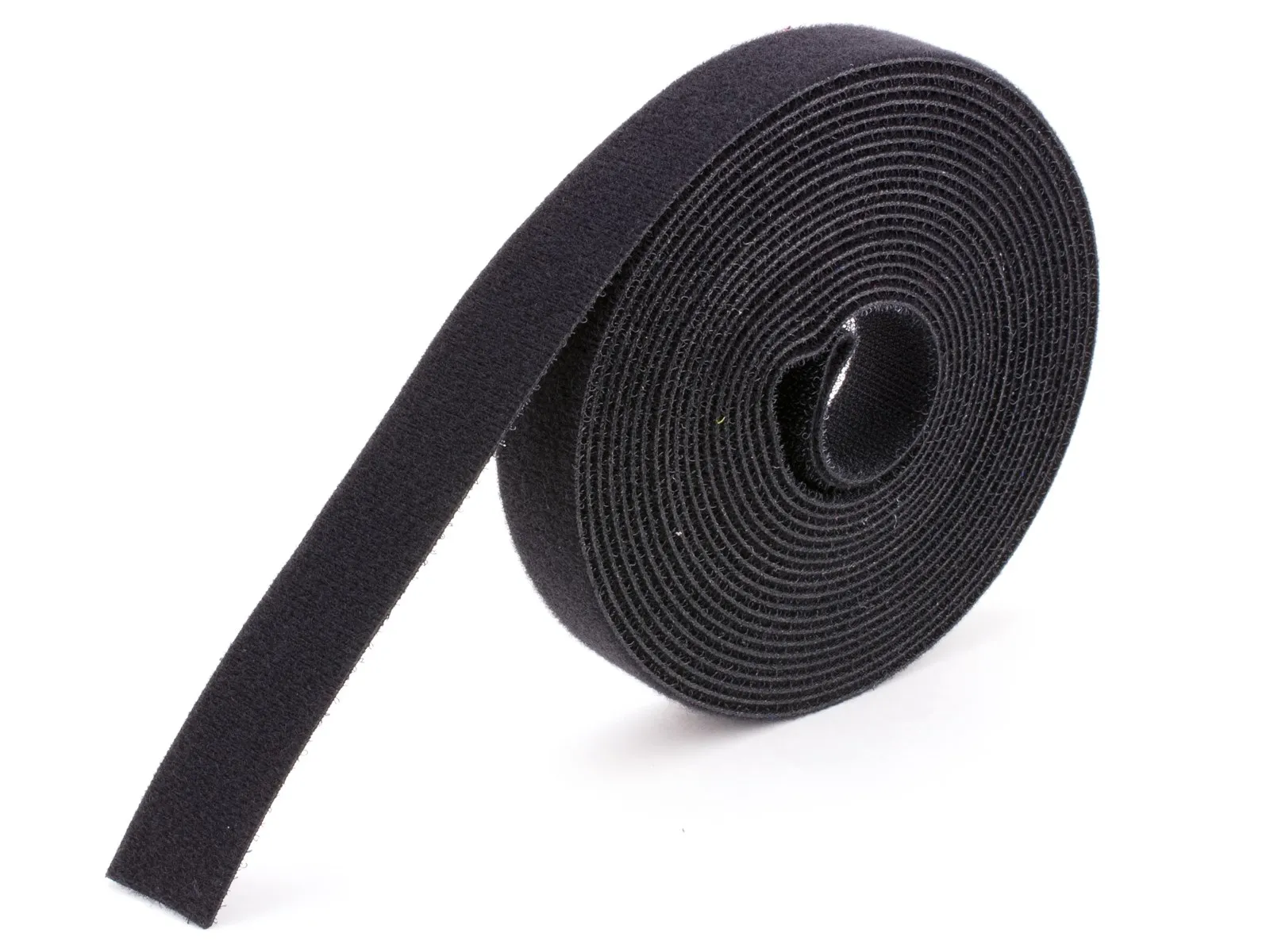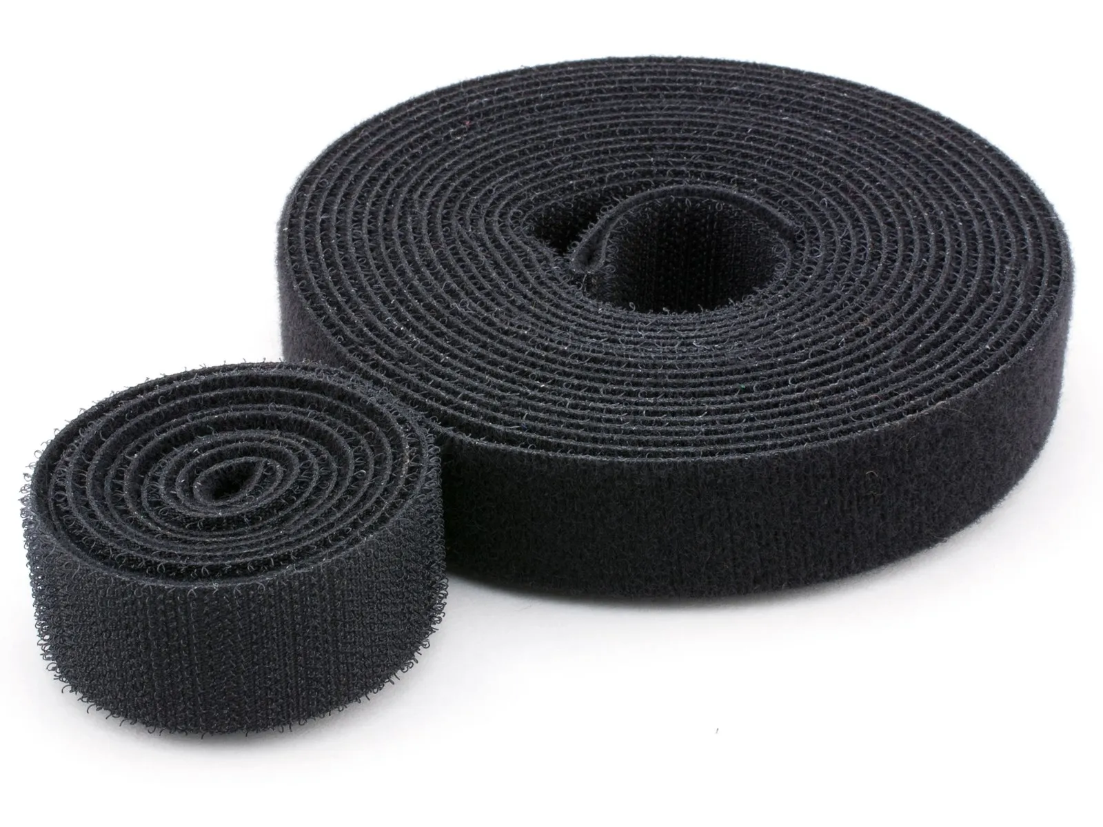 3/4 Inch Continuous Black Hook and Loop Wrap - 5 Yards