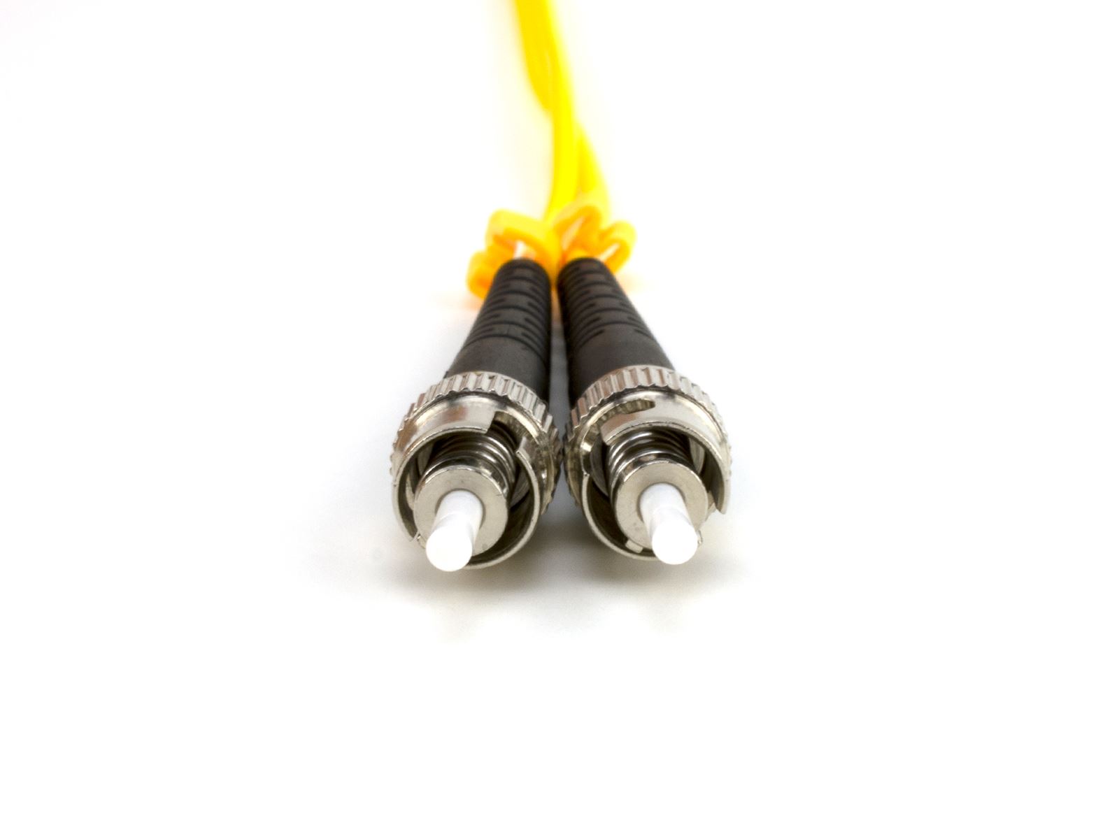 This 2m Singlemode Duplex Fiber Optic Patch Cable (9/125) - ST to ST is built with genuine Corning Glass, has ceramic ferrules and a 9/125 micron core, this cable is suitable for high speed, high bandwidth, far-reaching telecommunications such that you would find in long-distance telephony and cable tele