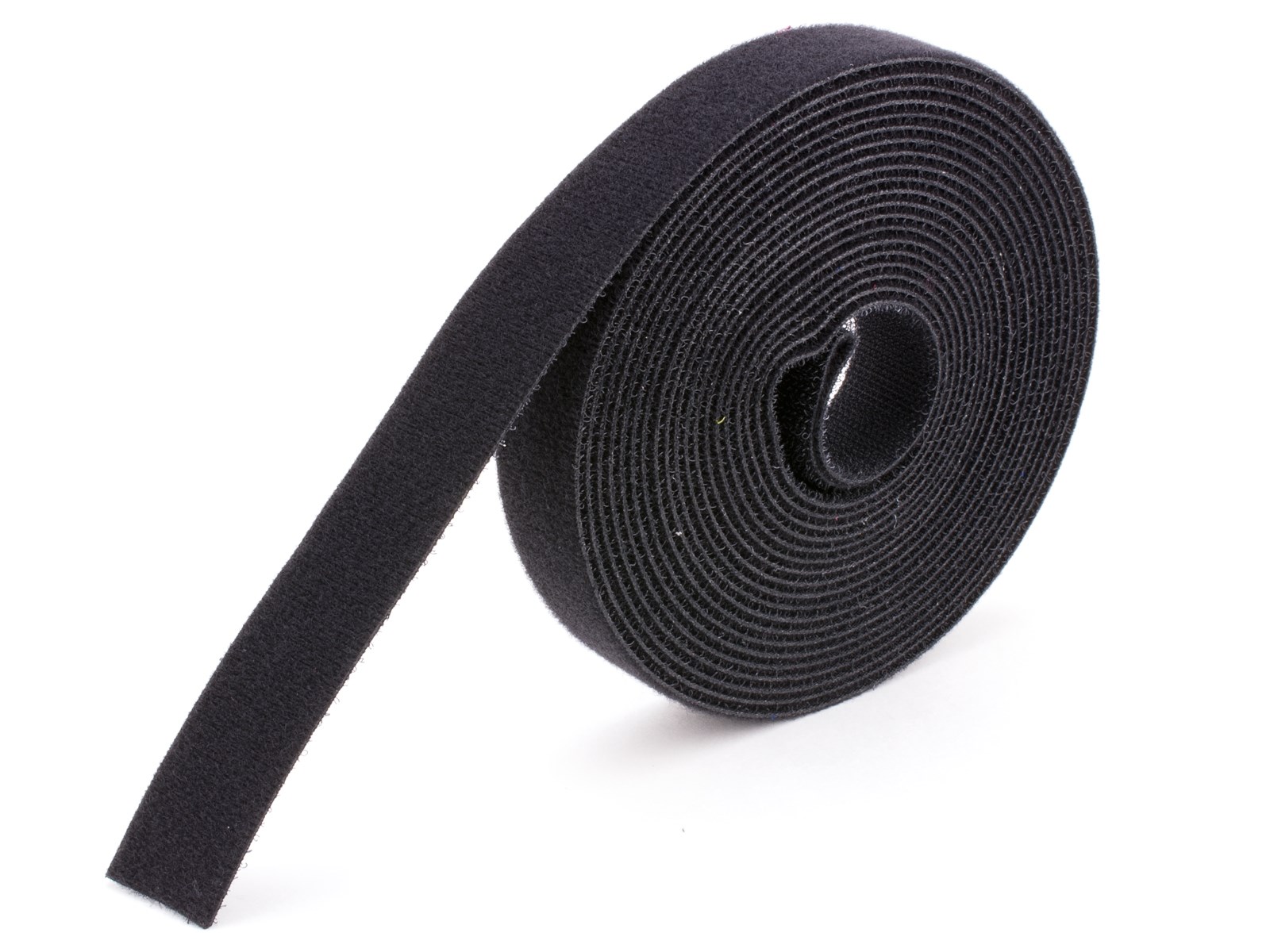 3/8 Inch Continuous Black Hook and Loop Wrap - 10 Yards