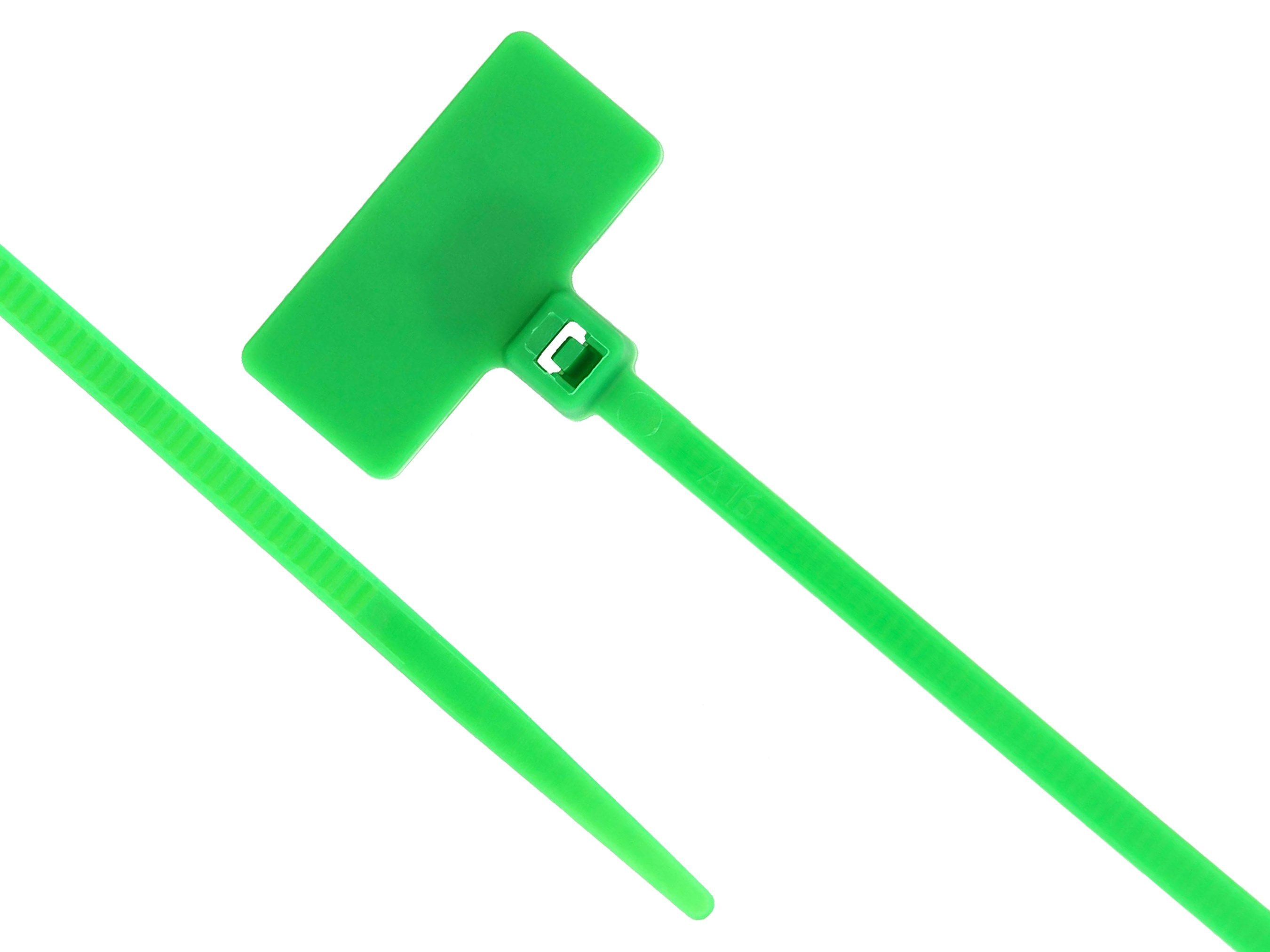 SCT 4 Inch Green Miniature ID Cable Tie with Outside Flag are a natural choice for many applications due to their versatility and ease of installation in addition to their low price point. Nylon Cable Ties have virtually limitless applications for just about every industry. The addition of an identification flag is a great way to keep everything organized and easily identified at a later time. Suitable for most applications, our miniature identification cable ties have a continuous working temperature of -40°F to 185°F and can support a maximum weight of 18lbs. Available in wide variety of colors allowing virtually limitless options for color coded organization and easy identification. All SCT feature smooth rounded edges making these cable ties easy on the hands, in addition to a finely spaced gear rack allowing for exact adjustment ensuring a snug fit. Comprised of 6/6 Nylon with a compact molecular structure provides better weathering and sunlight resistance, higher melting point, superior colorfastness and excellent abrasion resistance creating a high quality, dependable cable tie with natural high resistance to insects, fungi, animals, molds, mildew, rot and many chemicals .