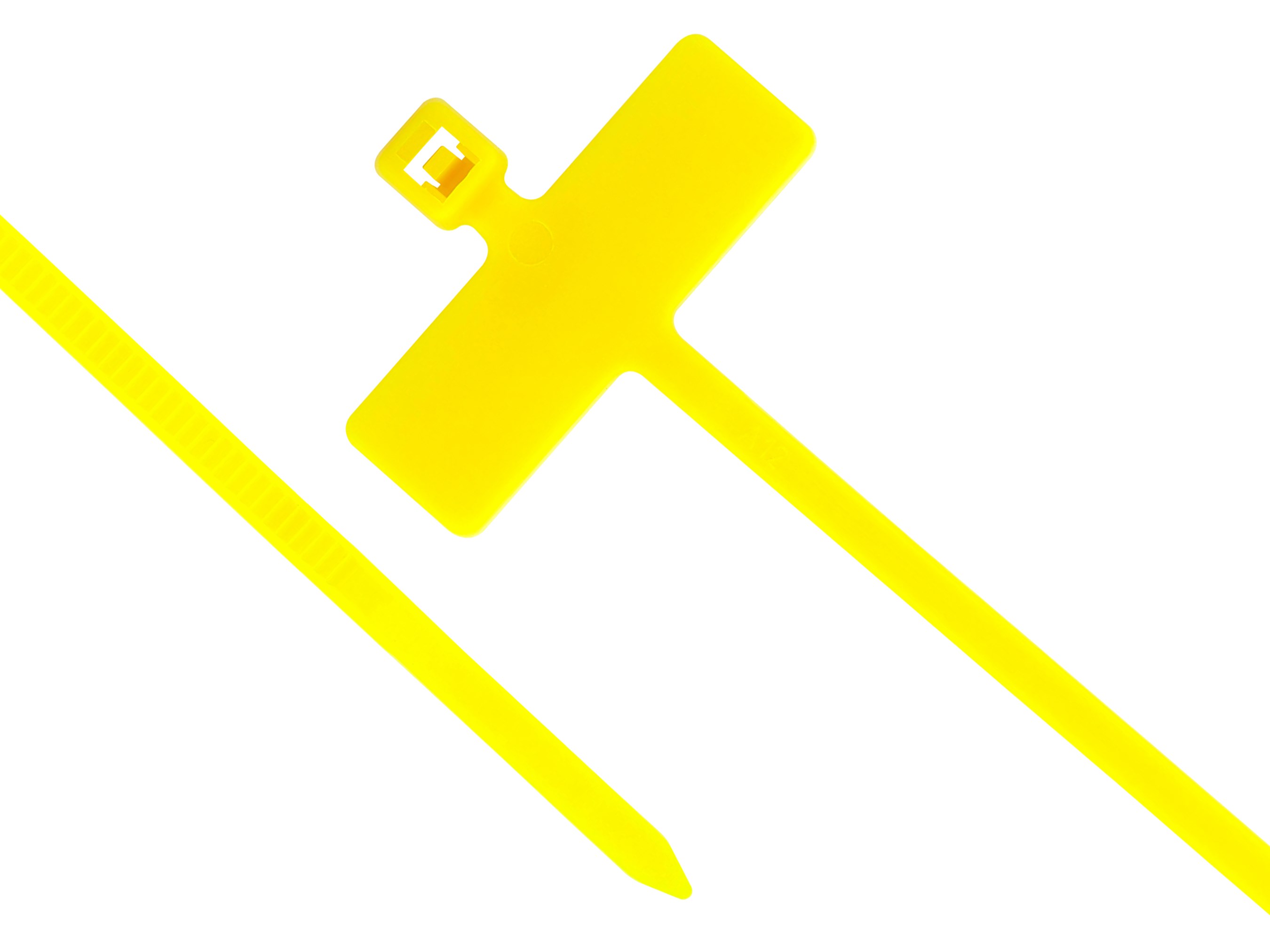 Introducing the 4 Inch Yellow Miniature ID Cable Tie with Inside Flag from RealGrip™. This versatile and durable cable tie is designed to help you organize and identify your cables with ease. Made from high-quality Nylon 6/6, these cable ties are perfect for general-purpose use and come in a convenient pack of 100. Whether you're managing cables in a professional setting or at home, these cable ties offer a reliable solution for keeping your wires neat and tidy.