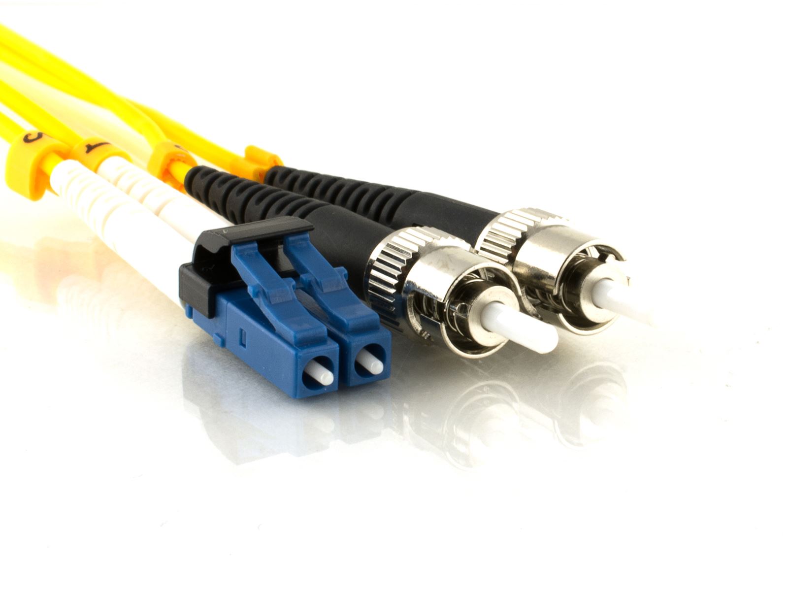 This 5m Singlemode Duplex Fiber Optic Patch Cable (9/125) - Mini LC to ST is built with genuine Corning Glass, has ceramic ferrules and a 9/125 micron core, this cable is suitable for high speed, high bandwidth, far-reaching telecommunications such that you would find in long-distance telephony and cable tele