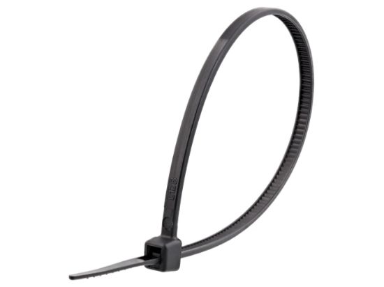 6 Inch Black UV Miniature Cable Ties are designed to secure cable bundles, harness wiring components and keep them in place. Coming in a pack of 1000, they have a self-locking head on one end and serrated teeth which function like straps on the other end. These two ends work by fitting inside each other in a self-locking mechanism.