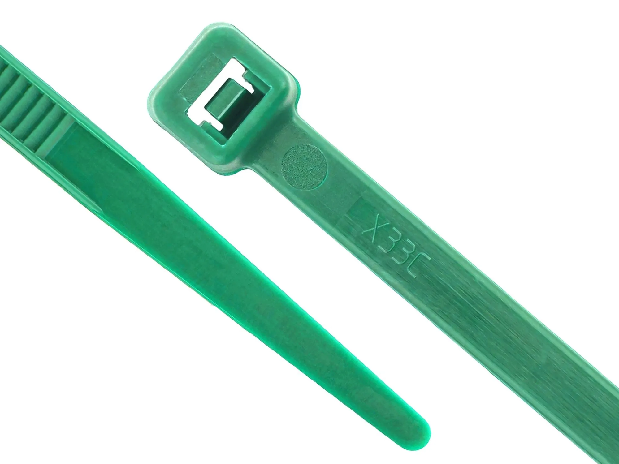 6 Inch Green Intermediate Cable Ties are designed to secure cable bundles, harness wiring components and keep them in place. Coming in a pack of 100, they have a self-locking head on one end and serrated teeth which function like straps on the other end. These two ends work by fitting inside each other in a self-locking mechanism.